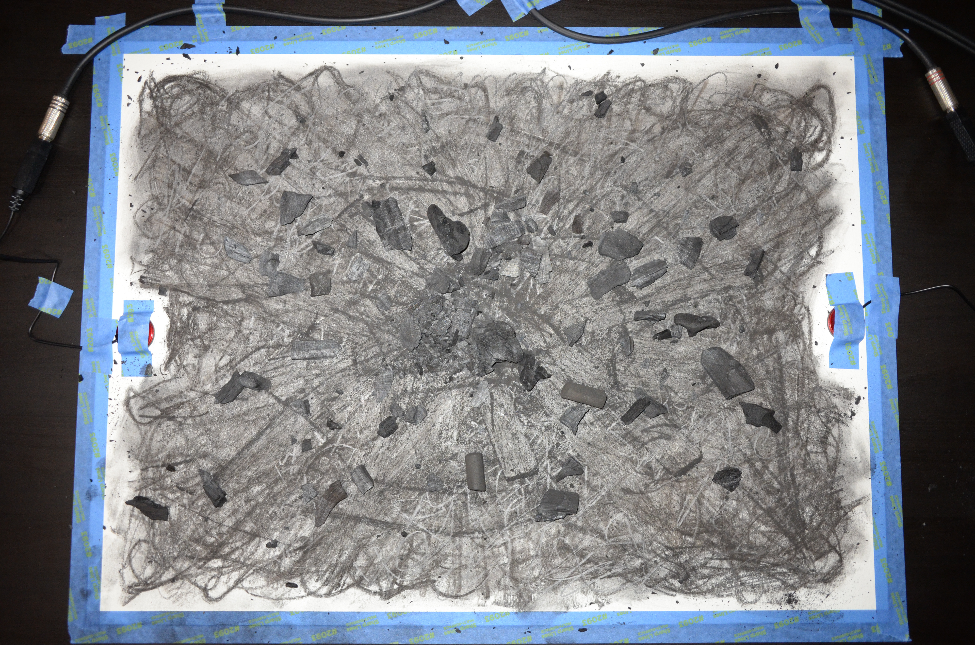 Carbón mineral sobre papel y grabación de sonido manipulada de 42 min (loop).